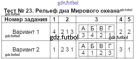 Готовые домашние задания по Географии за 6 класс Пятунина Тесты УМК 2017 ФГОС - Тесты Тест-23. Рельеф дна Мирового океана