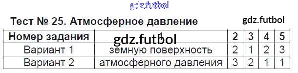 Готовые домашние задания по Географии за 6 класс Пятунина Тесты УМК 2017 ФГОС - Тесты Тест-25. Атмосферное давление