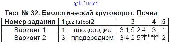 Готовые домашние задания по Географии за 6 класс Пятунина Тесты УМК 2017 ФГОС - Тесты Тест-32. Биологический круговорот. Почва