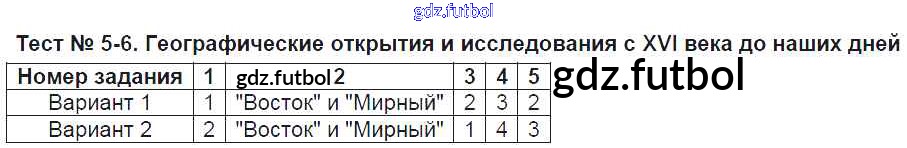 Готовые домашние задания по Географии за 6 класс Пятунина Тесты УМК 2017 ФГОС - Тесты Тест-5-6. Географические открытия и исследования с XVI века до наших дней