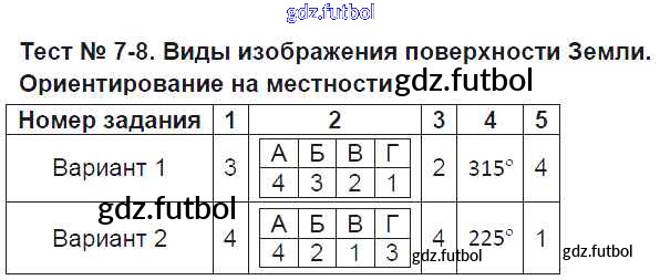 Готовые домашние задания по Географии за 6 класс Пятунина Тесты УМК 2017 ФГОС - Тесты Тест-7-8. Виды изображения поверхности Земли