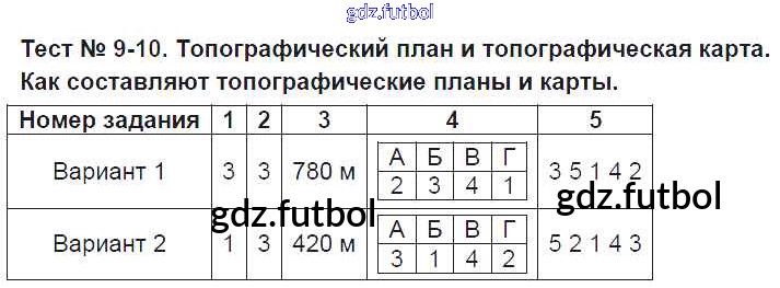 Готовые домашние задания по Географии за 6 класс Пятунина Тесты УМК 2017 ФГОС - Тесты Тест-9-10. Топографический план и топографическая карта