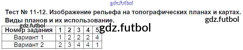 Готовые домашние задания по Географии за 6 класс Пятунина Тесты УМК 2017 ФГОС - Тесты Тест-11-12. Изображение рельефа на топографических планах и картах