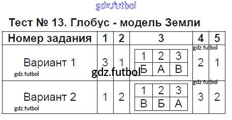 Готовые домашние задания по Географии за 6 класс Пятунина Тесты УМК 2017 ФГОС - Тесты Тест-13. Глобус - модель Земли