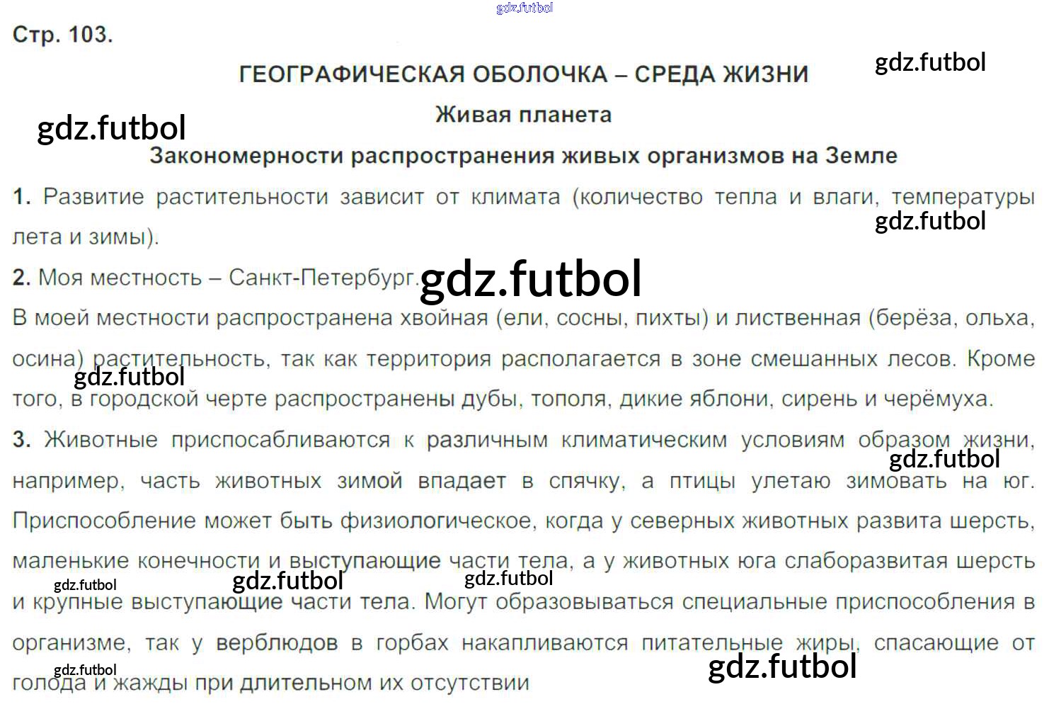 Готовые домашние задания по Географии за 6 класс Румянцев Рабочая тетрадь Вертикаль 2015 ФГОС - Страницы 103