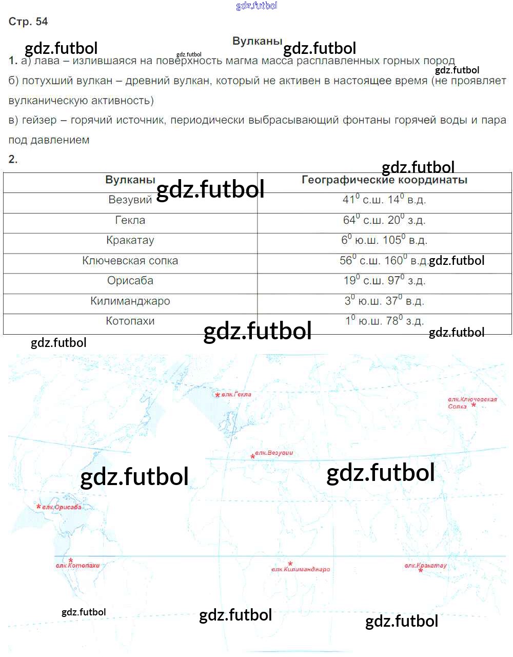 Готовые домашние задания по Географии за 6 класс Румянцев Рабочая тетрадь Вертикаль 2015 ФГОС - Страницы 54