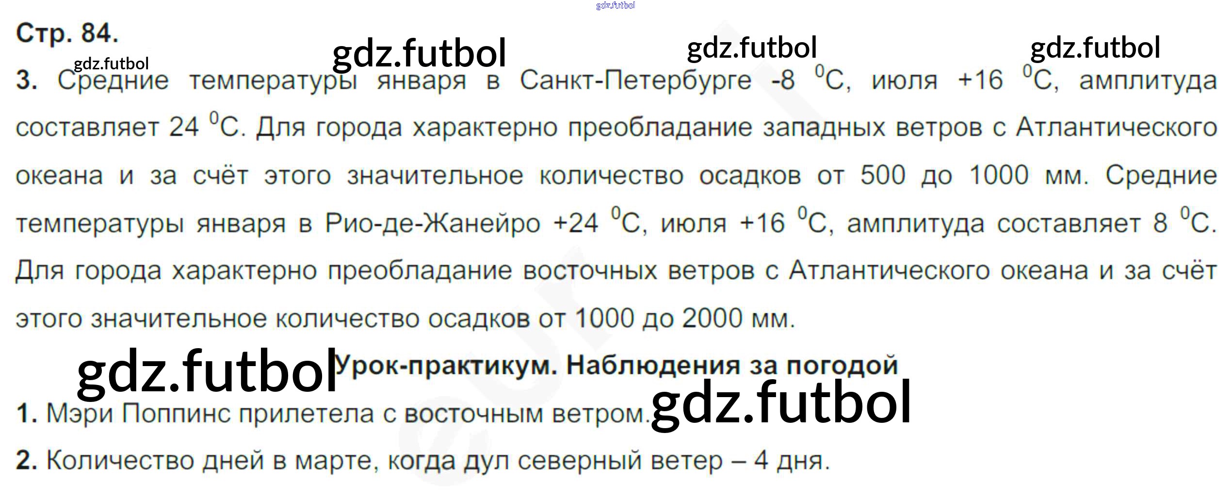 Готовые домашние задания по Географии за 6 класс Румянцев Рабочая тетрадь Вертикаль 2015 ФГОС - Страницы 84