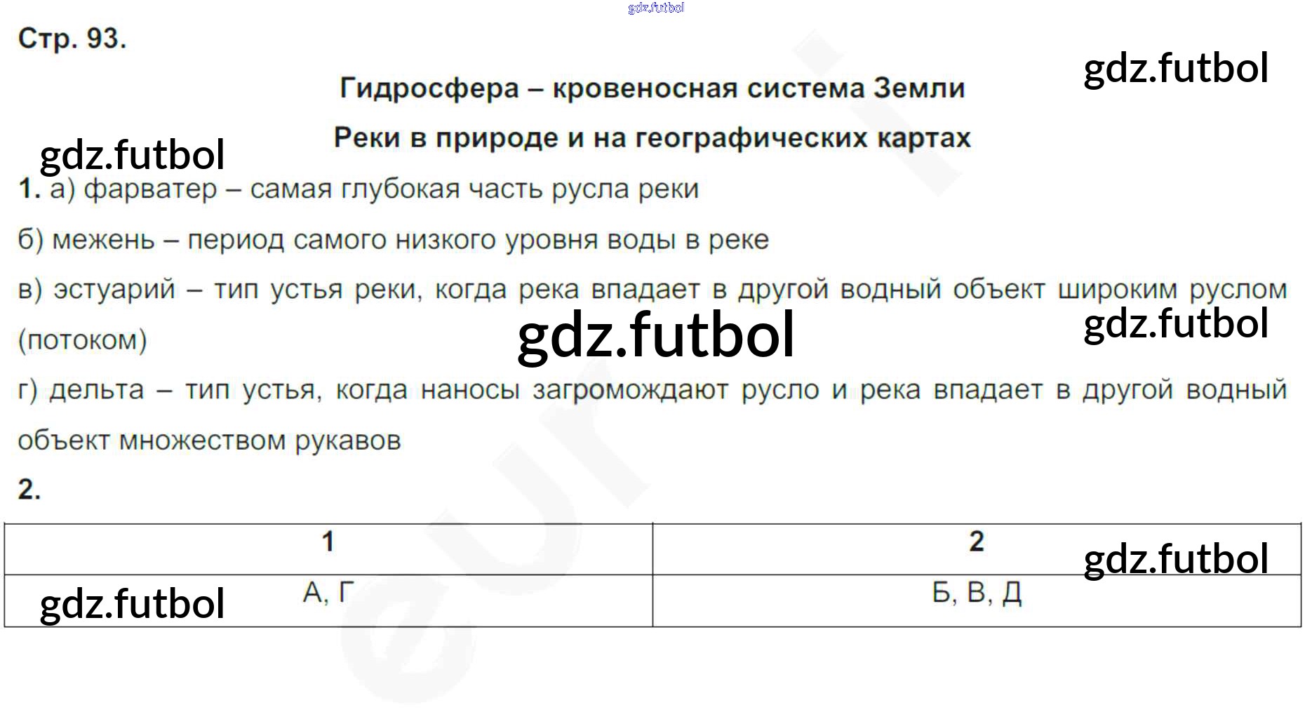 Готовые домашние задания по Географии за 6 класс Румянцев Рабочая тетрадь Вертикаль 2015 ФГОС - Страницы 93