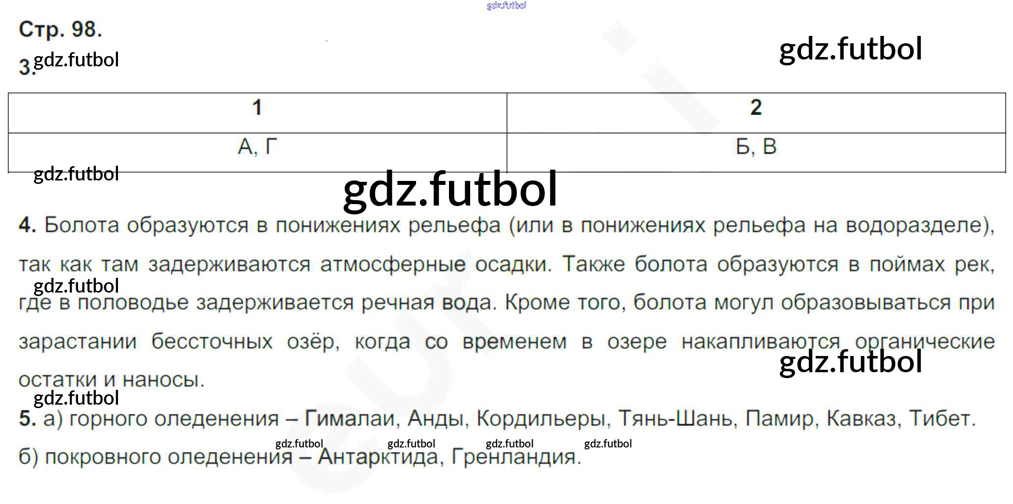 Готовые домашние задания по Географии за 6 класс Румянцев Рабочая тетрадь Вертикаль 2015 ФГОС - Страницы 98