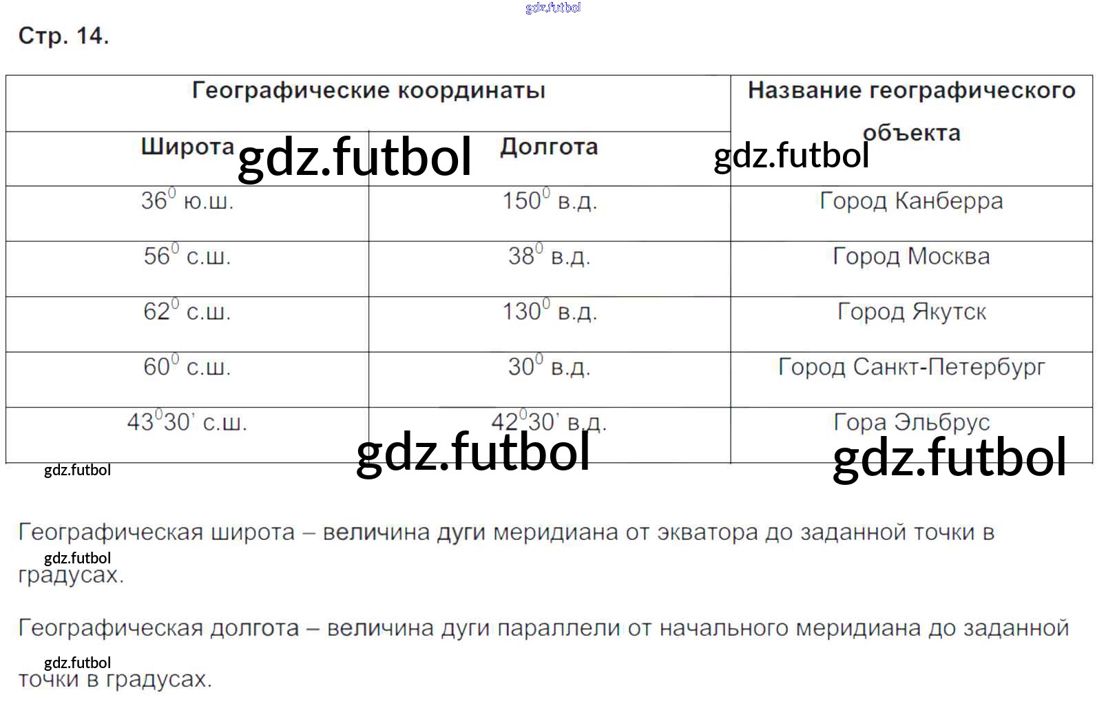 Готовые решения задач (ГДЗ) по Географии пятый-шестой класс Сиротин Рабочая тетрадь 2019 ФГОС - Страницы 14 доступны для различных учебных материалов. У нас вы сможете найти авторские решения для всех пособий, предназначенных для школьников. Не секрет, что в настоящее время многие школьники прибегают к использованию готовых решебников, ведь они содержат подробные ответы для каждого упражнения, представленного в учебнике.