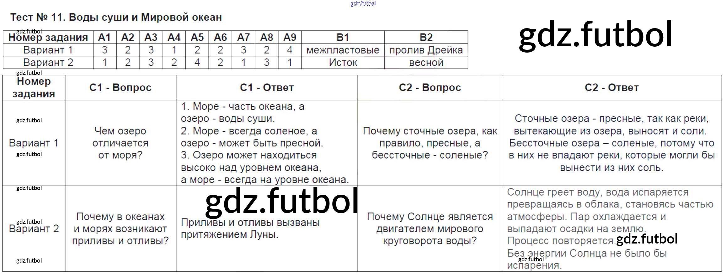 Тест-11. Воды суши и Мировой океан