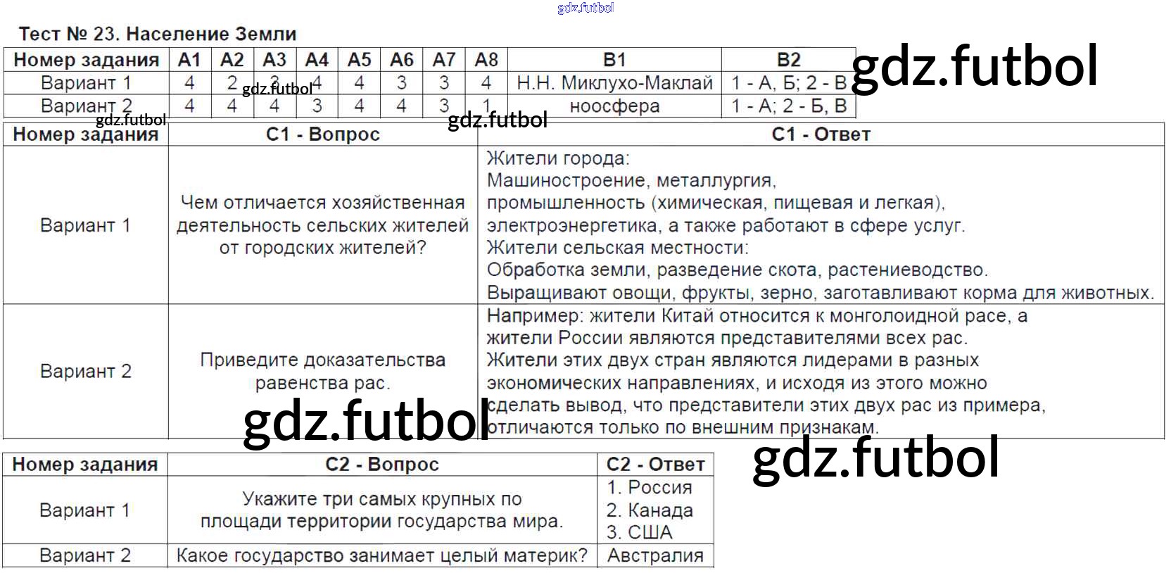 Готовые домашние задания по Географии за 6 класс Жижина Контрольно-измерительные материалы (КИМ) 2018 ФГОС - Тесты Тест-23. Население Земли