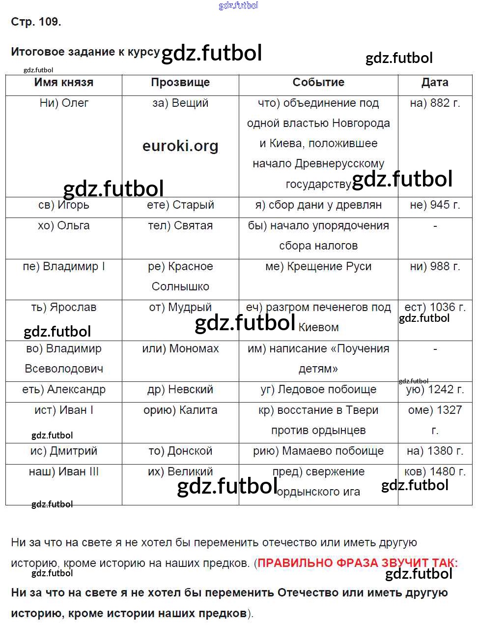 Готовые домашние задания по Истории за 6 класс Баранов Рабочая тетрадь Алгоритм успеха 2017 ФГОС - Страницы 109