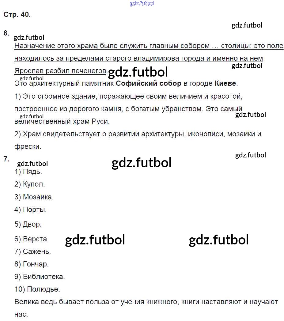 Готовые домашние задания по Истории за 6 класс Баранов Рабочая тетрадь Алгоритм успеха 2017 ФГОС - Страницы 40