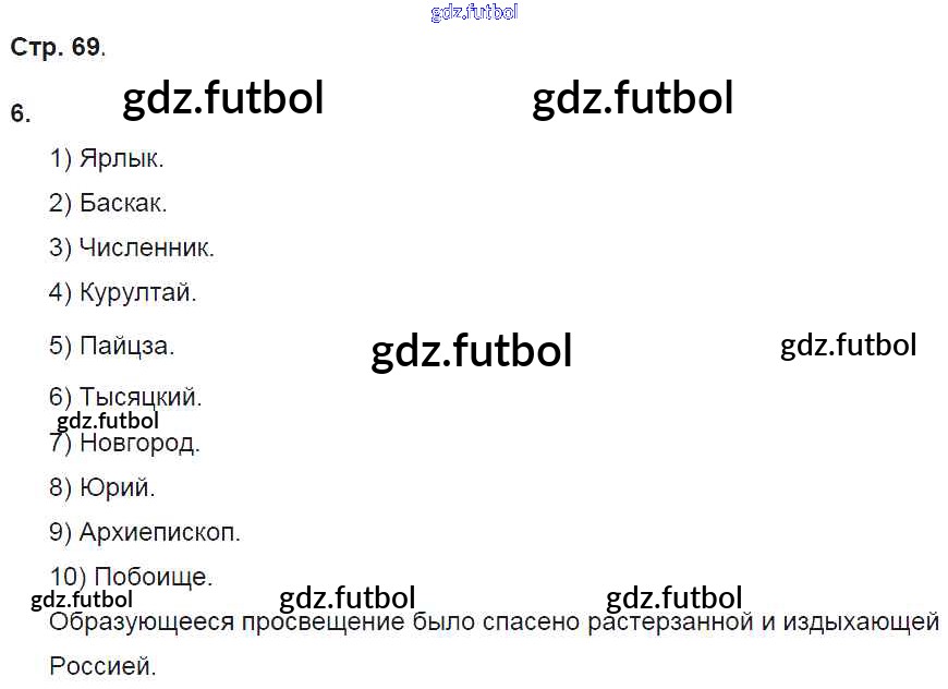 Готовые домашние задания по Истории за 6 класс Баранов Рабочая тетрадь Алгоритм успеха 2017 ФГОС - Страницы 69