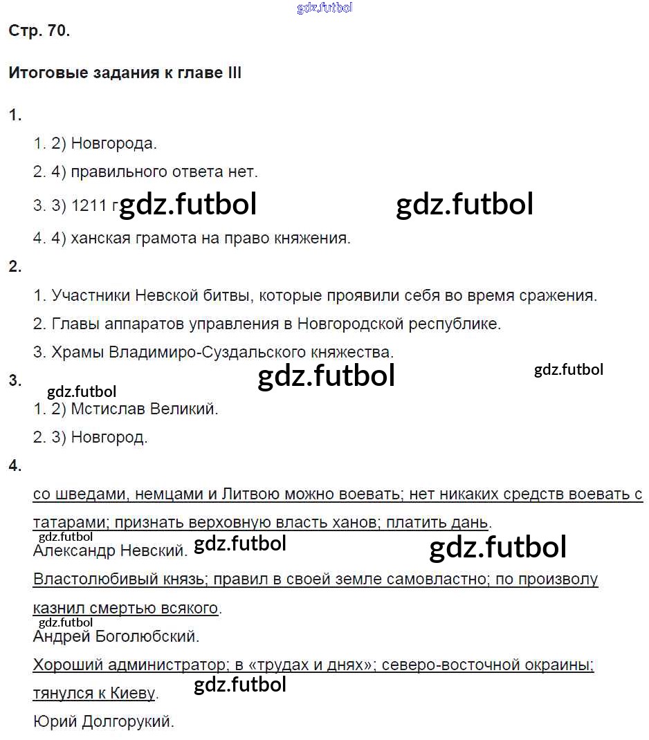 Готовые домашние задания по Истории за 6 класс Баранов Рабочая тетрадь Алгоритм успеха 2017 ФГОС - Страницы 70