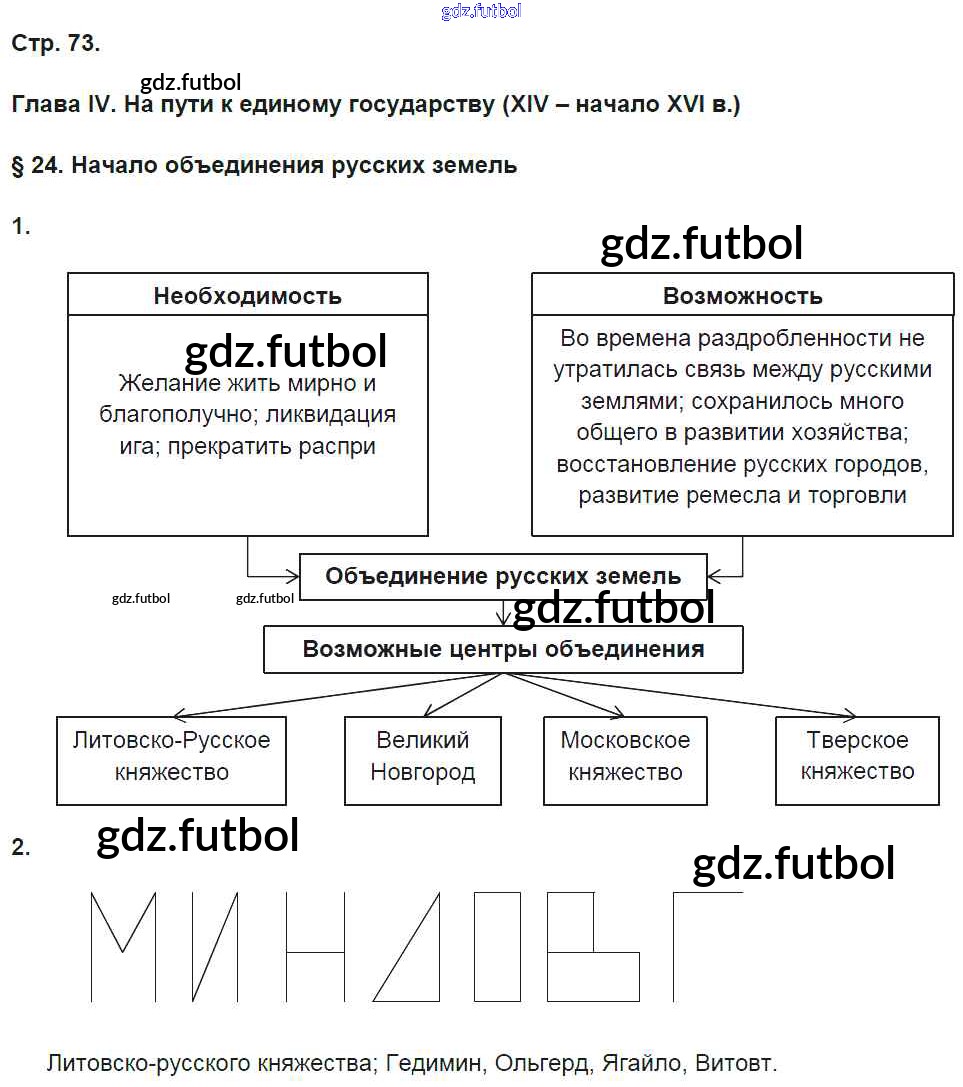 Готовые домашние задания по Истории за 6 класс Баранов Рабочая тетрадь Алгоритм успеха 2017 ФГОС - Страницы 73
