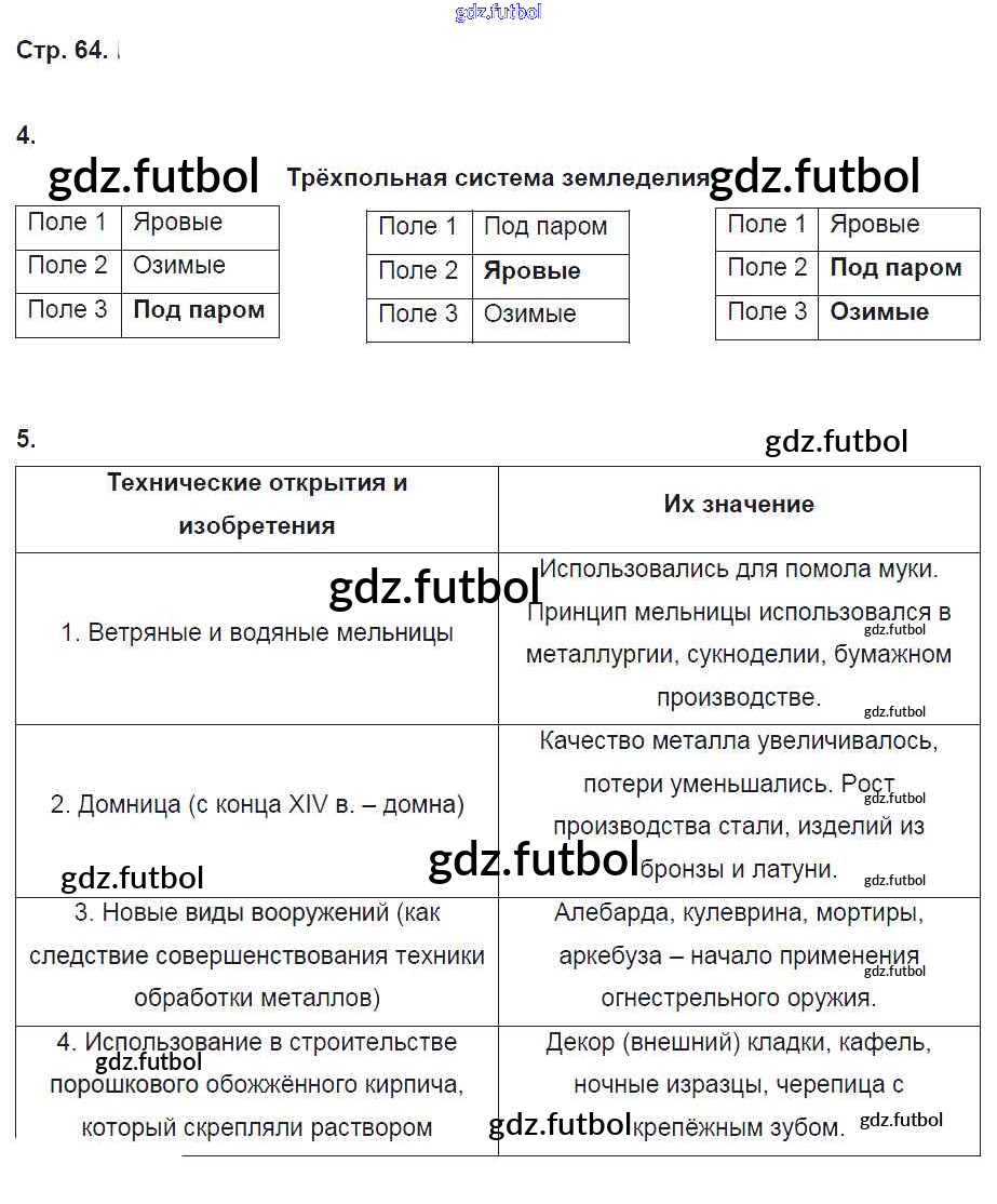 Готовые домашние задания по Истории за 6 класс Баранов Рабочая тетрадь Алгоритм успеха 2017 ФГОС - Страницы 64