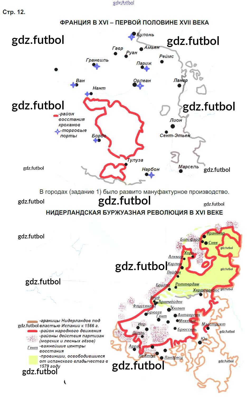 Готовые домашние задания по Истории за 6 класс Чугунова Атлас 2019 ФГОС - Страницы атласа Страница 12. Франция в XVI- первой половине XVII века. Нидерландская буржуазная революция