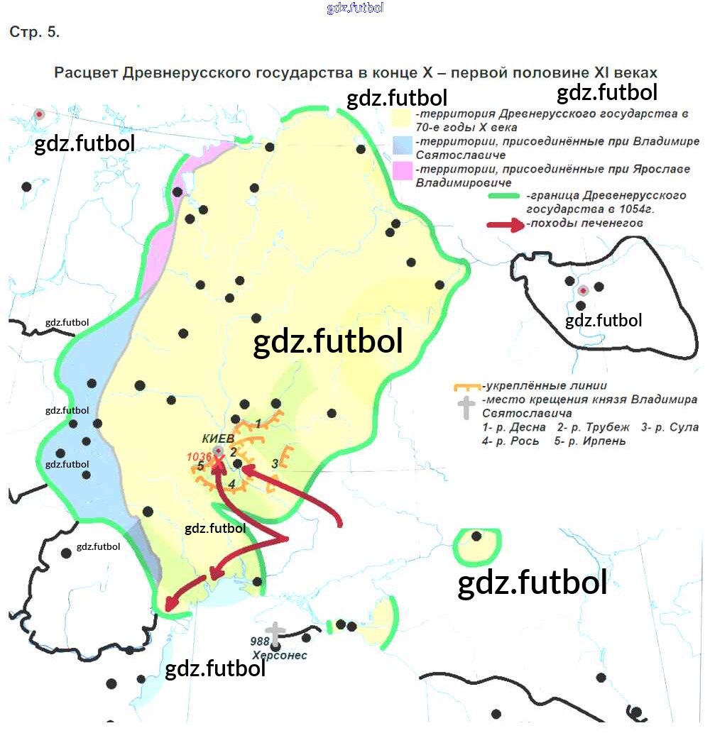 Готовые домашние задания по Истории за 6 класс Тороп Контурные карты 2015 ФГОС - Русь в IX - первой XII века страница 5