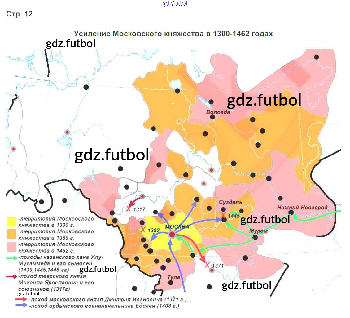 Готовые домашние задания по Истории за 6 класс Тороп Контурные карты 2015 ФГОС - Русь в середине XIII в. - начале XIV в. страница 12