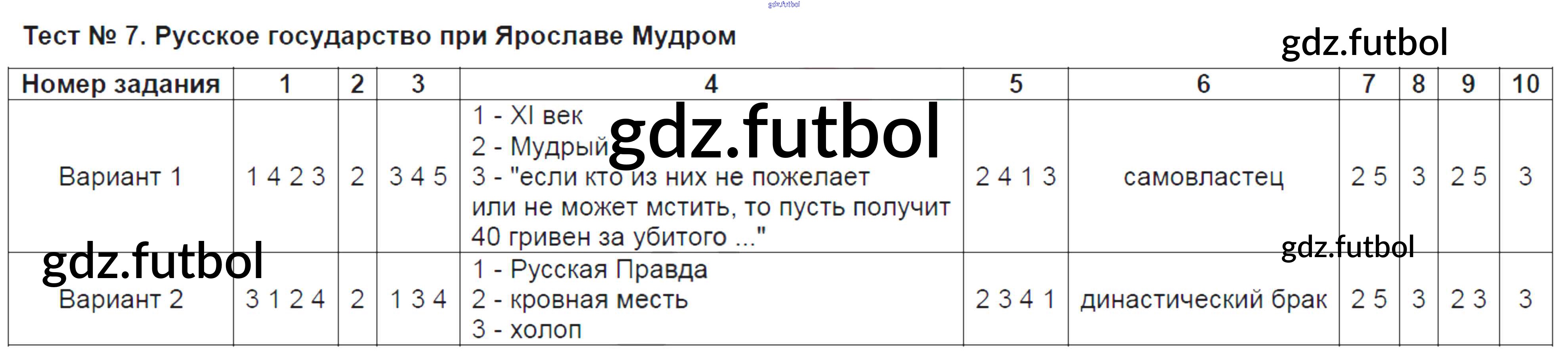 Готовые домашние задания по Истории за 6 класс Воробьёва Тесты УМК 2017 ФГОС - Тесты Тест №7. Русское государство при Ярославе Мудром