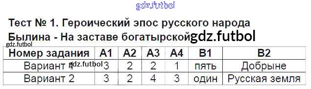Готовые домашние задания по Литературе за 6 класс Королева Контрольно-измерительные материалы (КИМ) 2015 ФГОС - Тесты Тест №1. Героический эпос русского народа