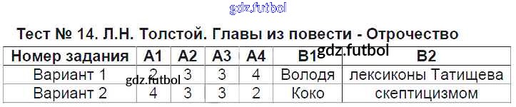 Готовые домашние задания по Литературе за 6 класс Королева Контрольно-измерительные материалы (КИМ) 2015 ФГОС - Тесты Тест №14. Главы из повести - Отрочество