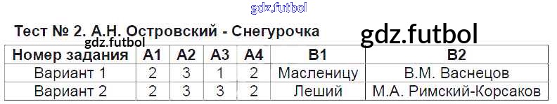 Готовые домашние задания по Литературе за 6 класс Королева Контрольно-измерительные материалы (КИМ) 2015 ФГОС - Тесты Тест №2. Снегурочка