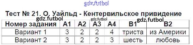 Готовые домашние задания по Литературе за 6 класс Королева Контрольно-измерительные материалы (КИМ) 2015 ФГОС - Тесты Тест №21. Кентервильское привидение