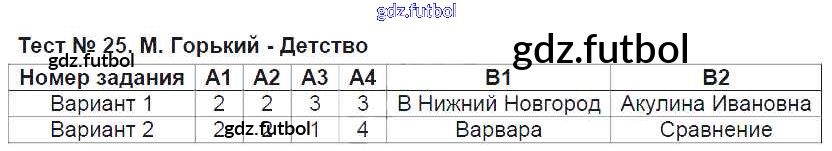 Готовые домашние задания по Литературе за 6 класс Королева Контрольно-измерительные материалы (КИМ) 2015 ФГОС - Тесты Тест №25. Детство