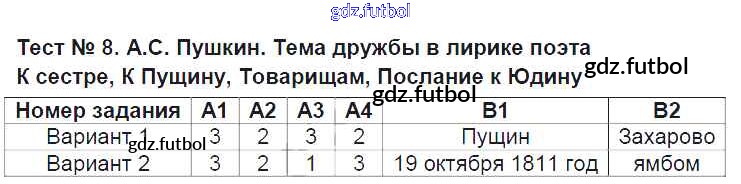 Тест №8. Тема дружбы в лирике поэта