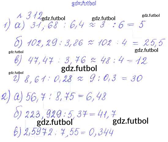 Готовые домашние задания по Математике за 6 класс Бунимович Задачник Сферы 2014 ФГОС - Упражнения 312
