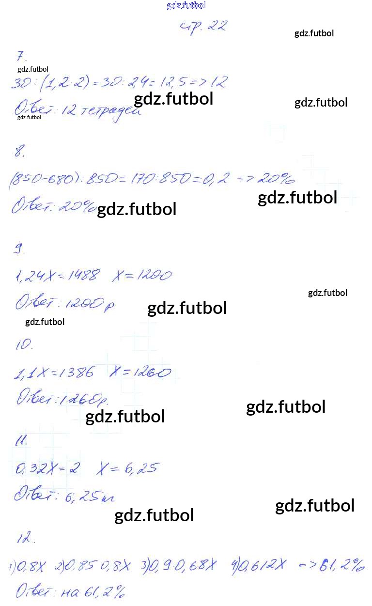 Готовые домашние задания по Математике за 6 класс Ерина Рабочая тетрадь УМК  2017 ФГОС - Часть 1. Страницы 22
