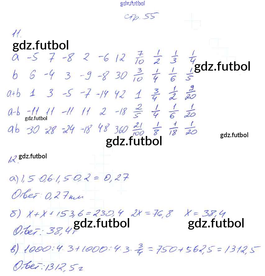 Готовые домашние задания по Математике за 6 класс Ерина Рабочая тетрадь УМК 2017 ФГОС - Часть 1. Страницы 55