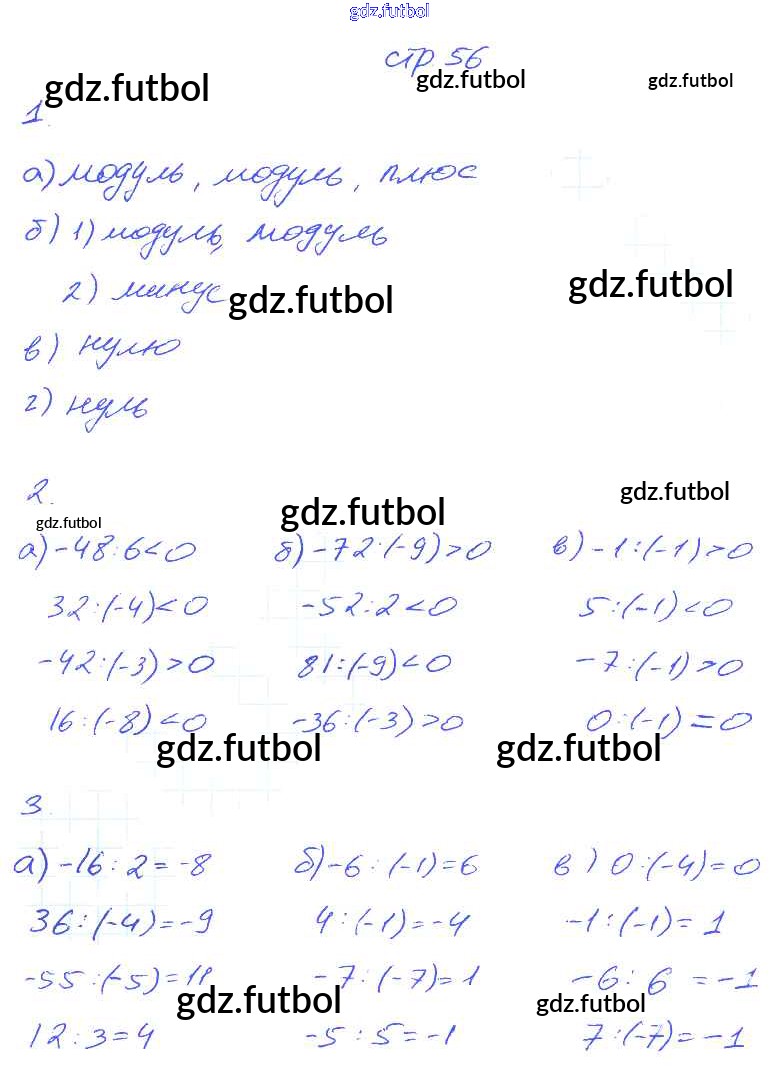 Готовые домашние задания по Математике за 6 класс Ерина Рабочая тетрадь УМК 2017 ФГОС - Часть 1. Страницы 56