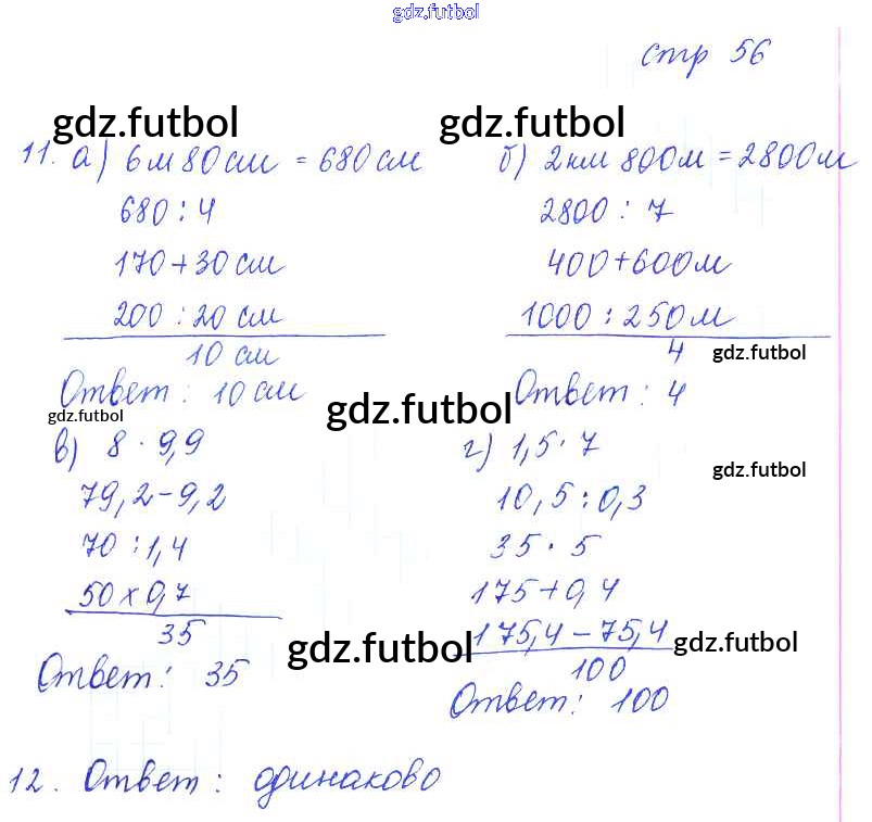 Готовые домашние задания по Математике за 6 класс Ерина Рабочая тетрадь УМК 2020 ФГОС - Часть 1. Страницы 56