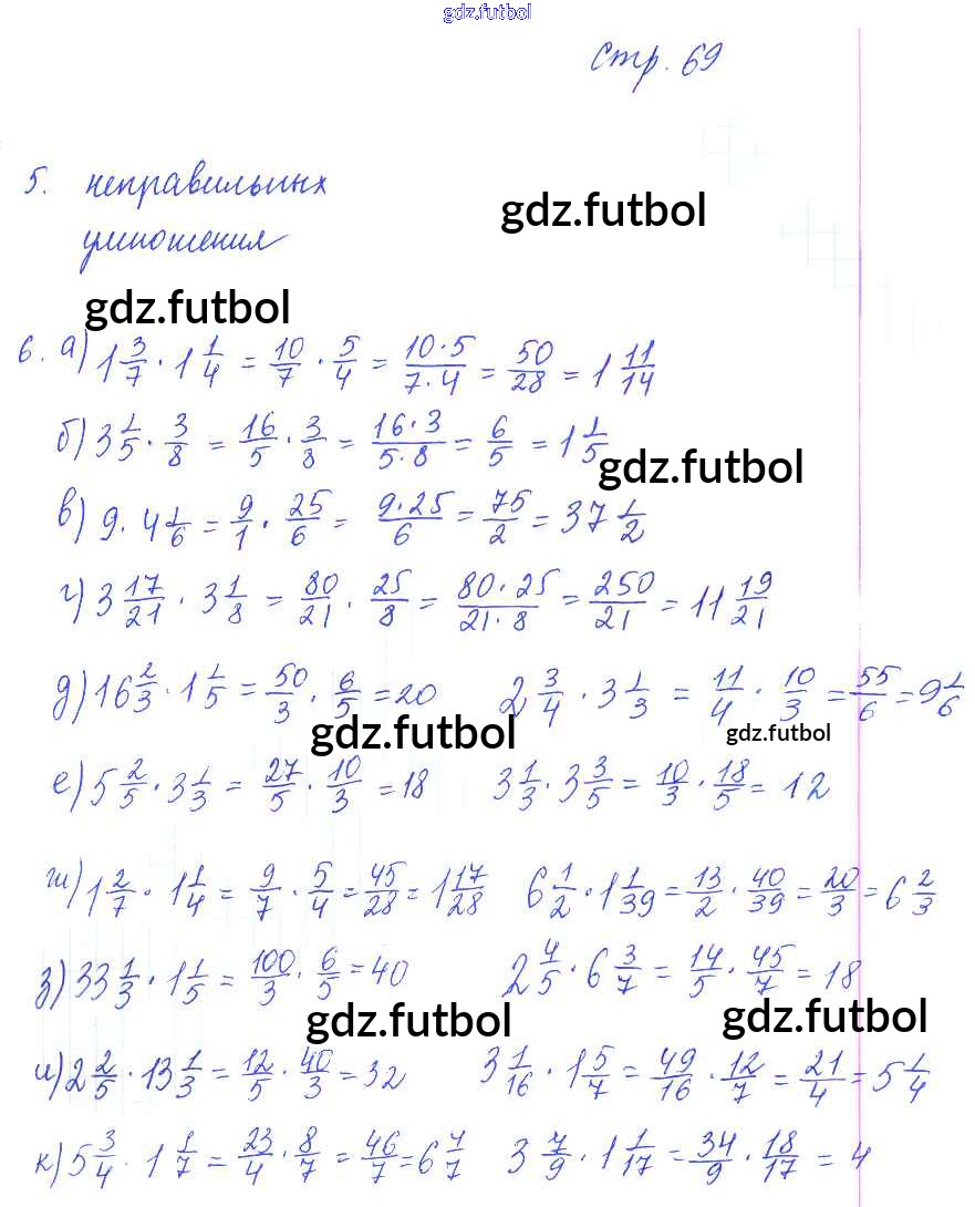Готовые домашние задания по Математике за 6 класс Ерина Рабочая тетрадь УМК 2020 ФГОС - Часть 1. Страницы 69