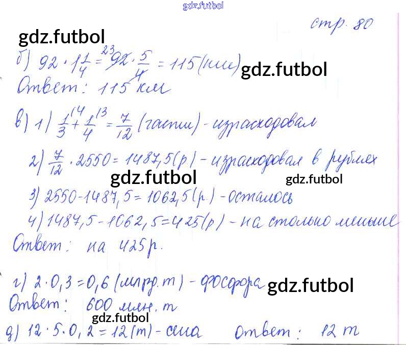 Готовые домашние задания по Математике за 6 класс Ерина Рабочая тетрадь УМК 2020 ФГОС - Часть 1. Страницы 80