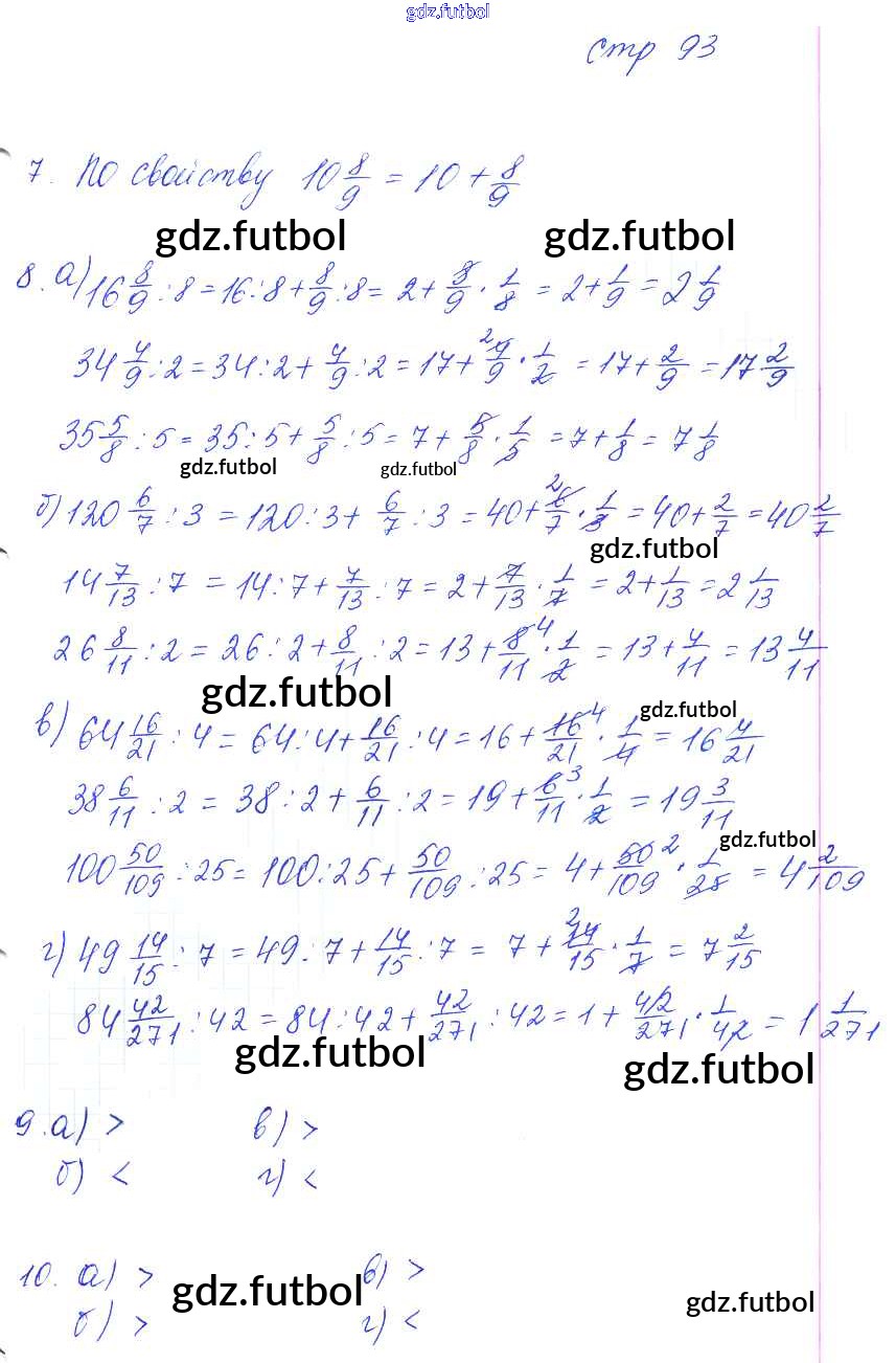 Готовые домашние задания по Математике за 6 класс Ерина Рабочая тетрадь УМК 2020 ФГОС - Часть 1. Страницы 93