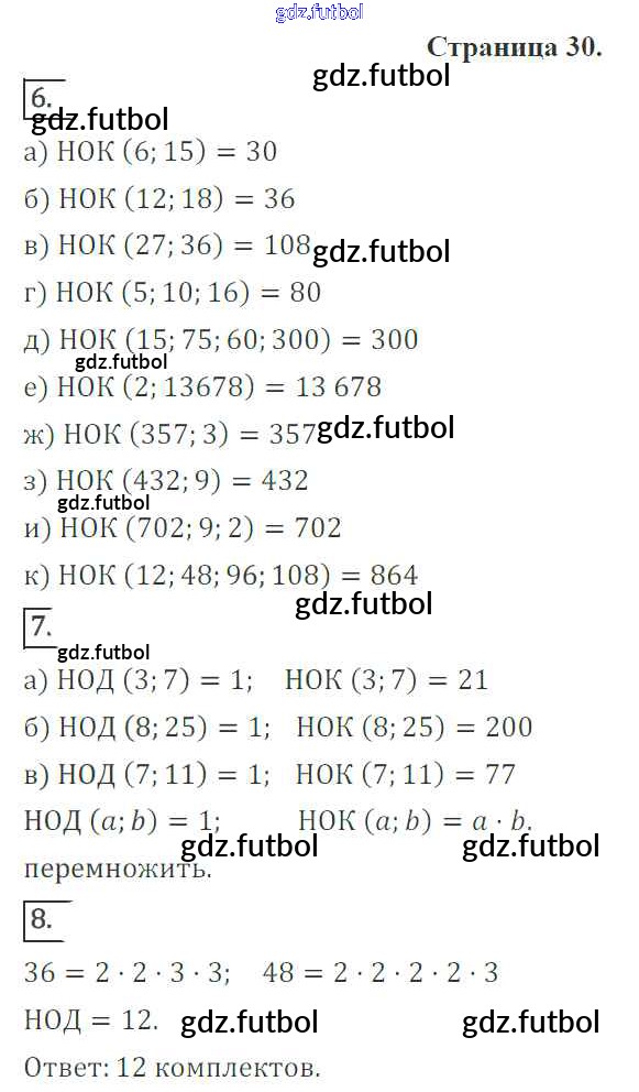 Готовые домашние задания по Математике за 6 класс Ерина Рабочая тетрадь УМК 2013 ФГОС - Страницы 30