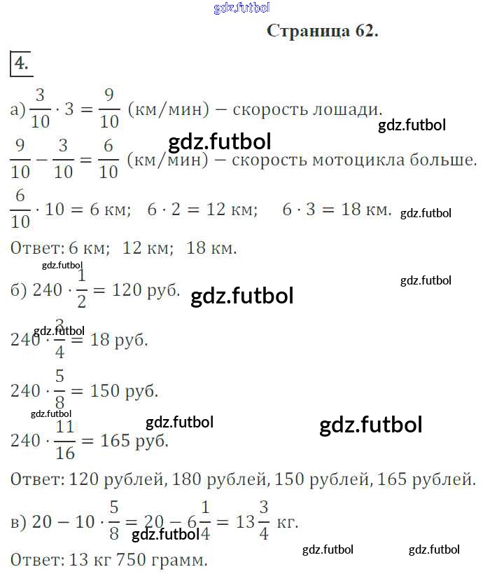 Готовые домашние задания по Математике за 6 класс Ерина Рабочая тетрадь УМК 2013 ФГОС - Страницы 62