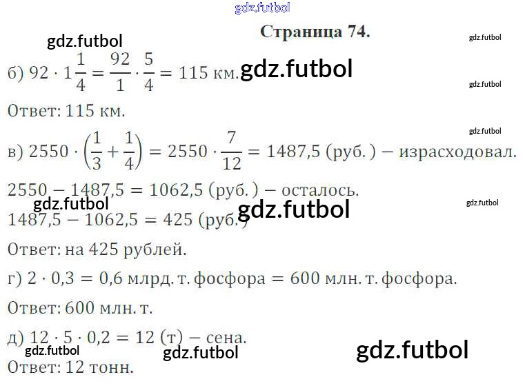 Готовые домашние задания по Математике за 6 класс Ерина Рабочая тетрадь УМК 2013 ФГОС - Страницы 74