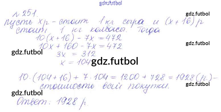 Готовые домашние задания по Математике за 6 класс Гамбарин Сборник задач и упражнений 2011 ФГОС - Упражнения 251