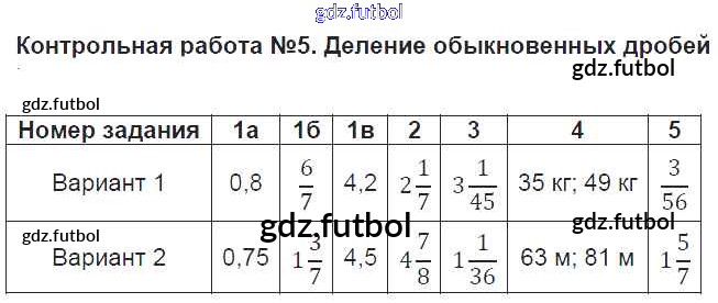 Готовые домашние задания по Математике за 6 класс Глазков Контрольно-измерительные материалы (КИМ) 2014 ФГОС - Контрольные работы 5