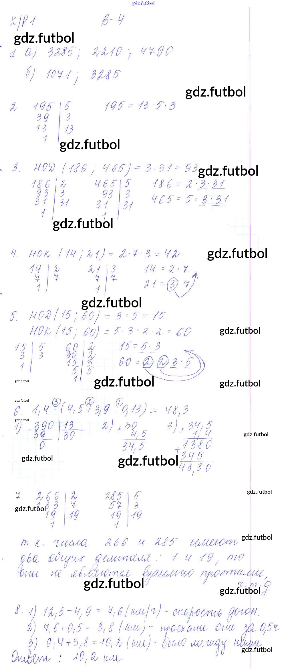 Готовые домашние задания по Математике за 6 класс Дудницын Контрольные работы УМК 2013 ФГОС - КР-1. Варианты 4