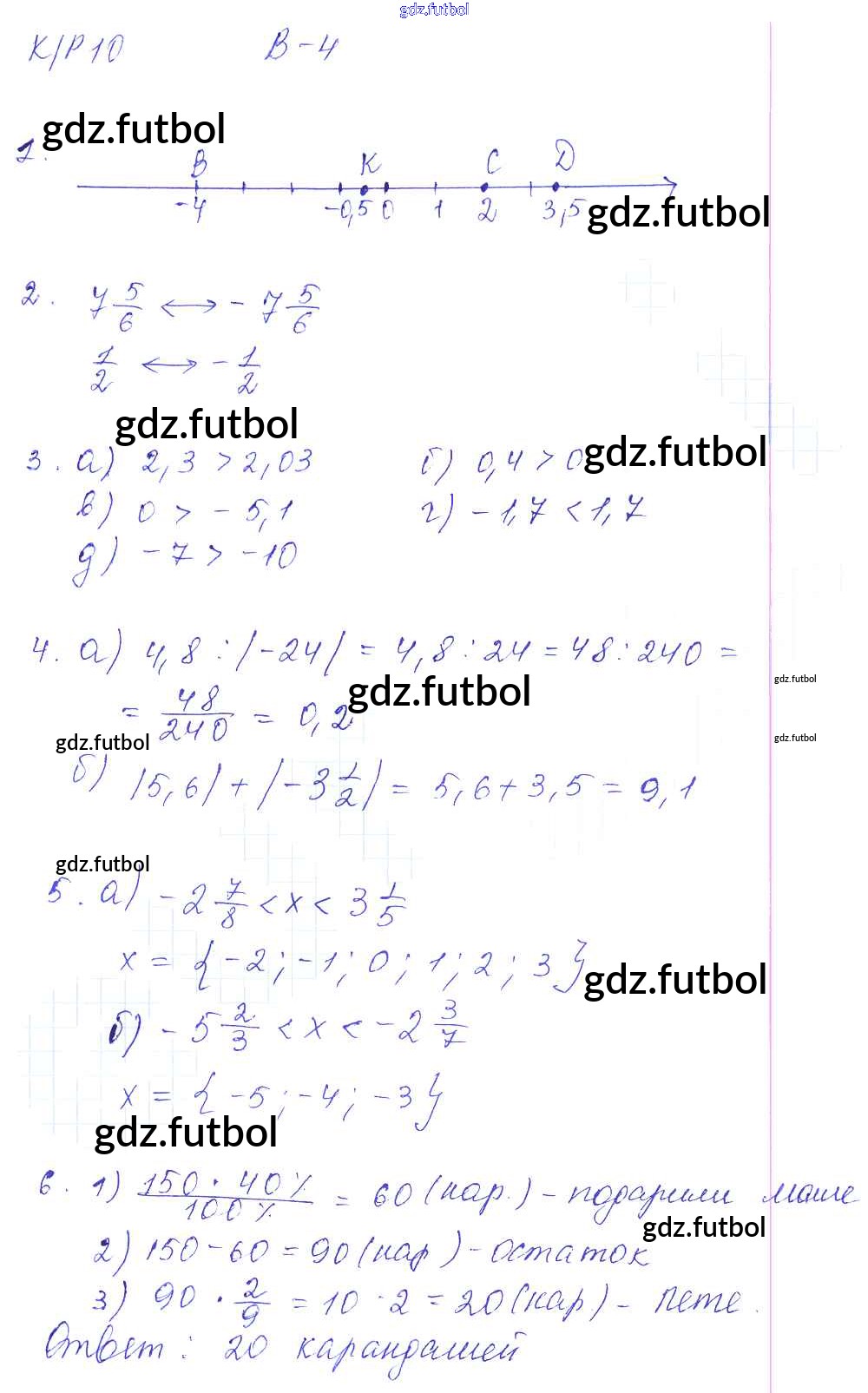 Готовые домашние задания по Математике за 6 класс Дудницын Контрольные работы УМК 2013 ФГОС - КР-10. Варианты 4