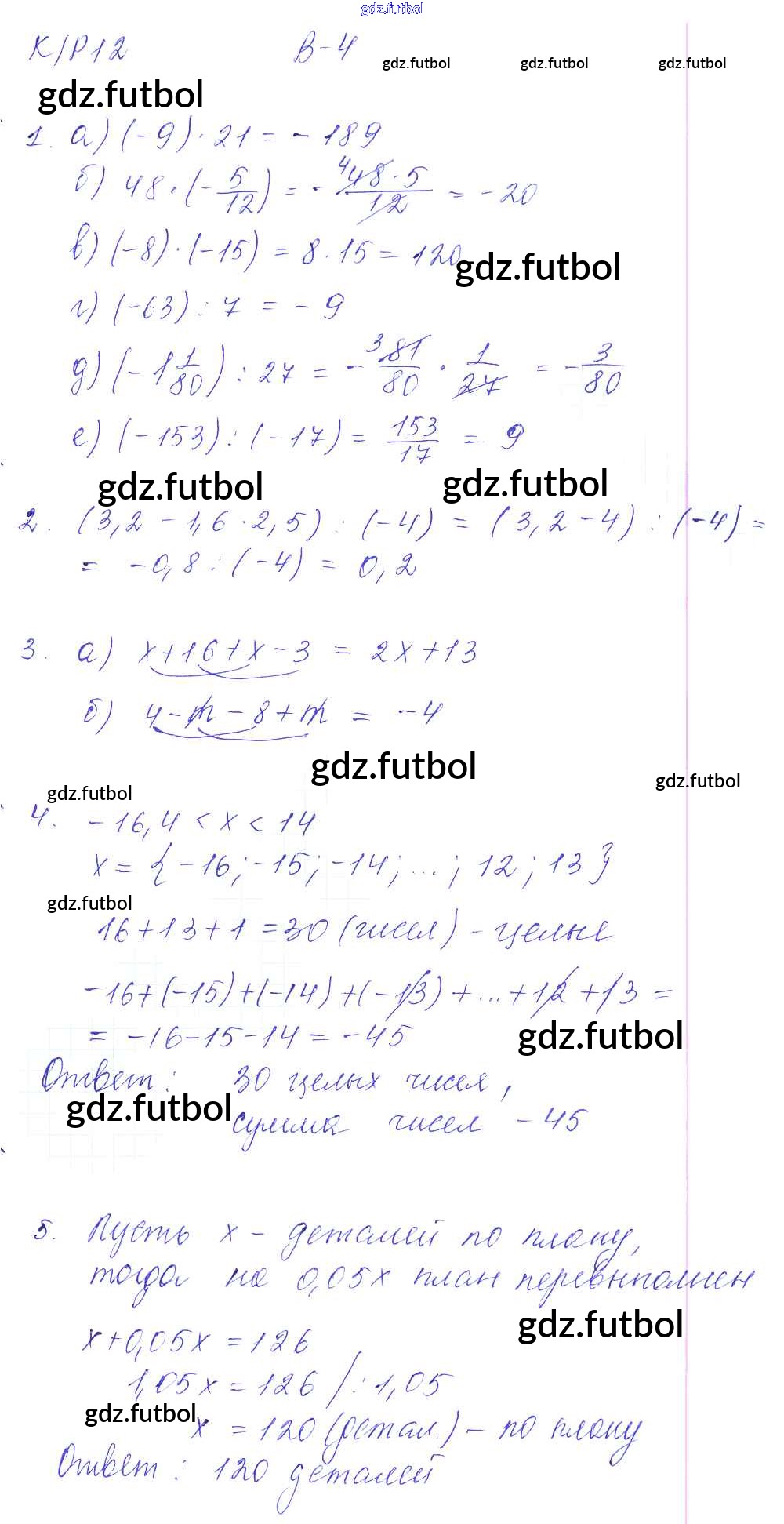 Готовые домашние задания по Математике за 6 класс Дудницын Контрольные работы УМК 2013 ФГОС - КР-12. Варианты 4