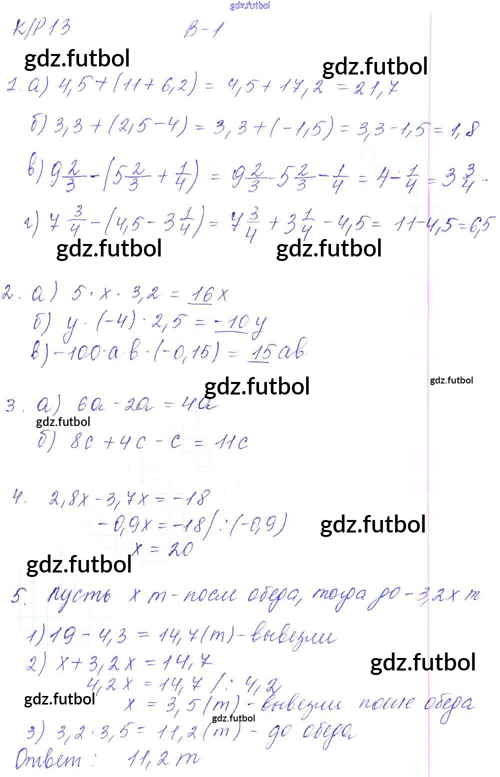 Готовые домашние задания по Математике за 6 класс Дудницын Контрольные работы УМК 2013 ФГОС - КР-13. Варианты 1