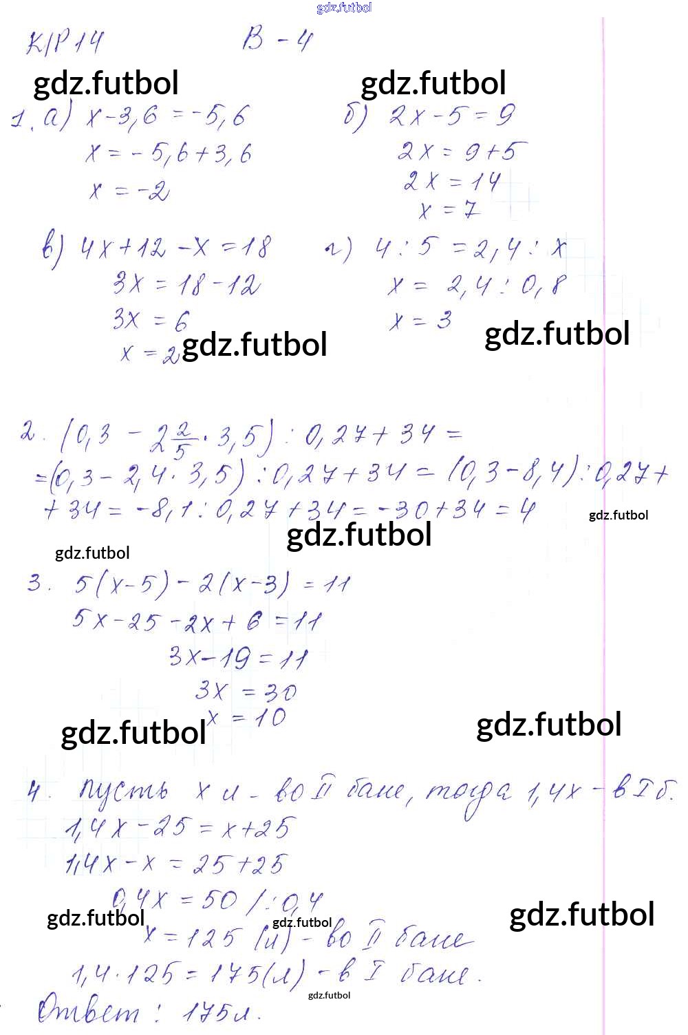 Готовые домашние задания по Математике за 6 класс Дудницын Контрольные работы УМК 2013 ФГОС - КР-14. Варианты 4
